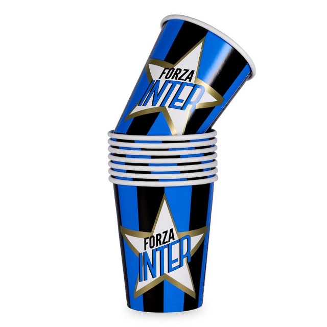 8 Bicchieri  in Cartoncino Biodegradabile , diametro 18 cm , tema INTER.