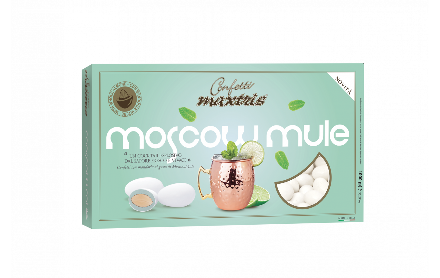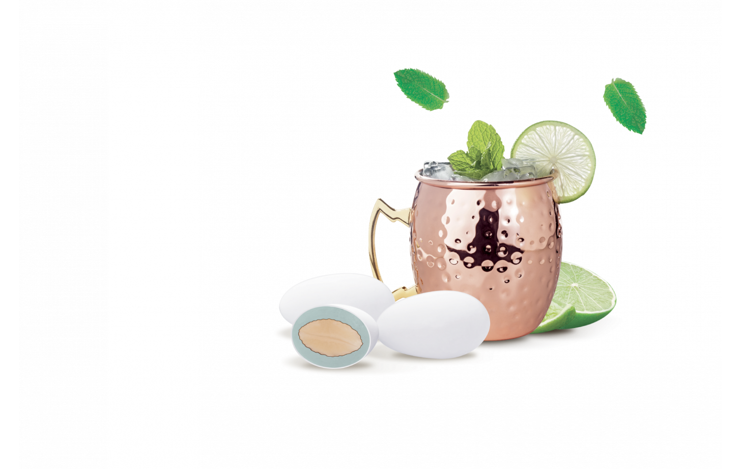 Mandorla tostata ricoperta da cioccolato bianco al gusto di Moscow Mule e da un sottile strato di zucchero.