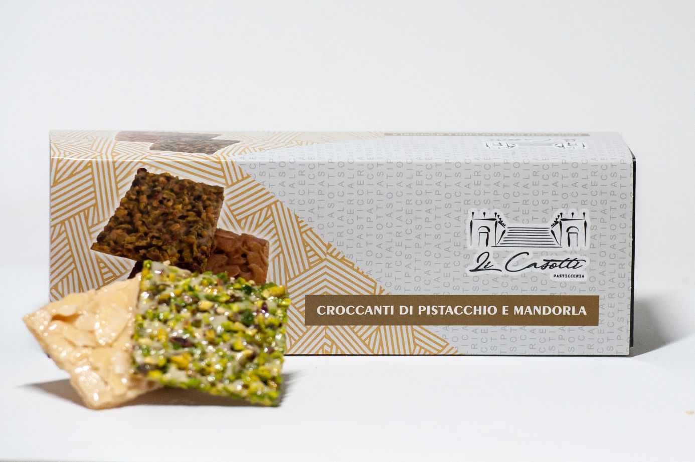 Granella di Pistacchio , affettato di Mandorle , flonix ( sciroppo di glucosio, zucchero, grasso vegetale ,colza e palma, destrosio, latte in polvere, emulsionanti, laticina di soia, panna 30% )