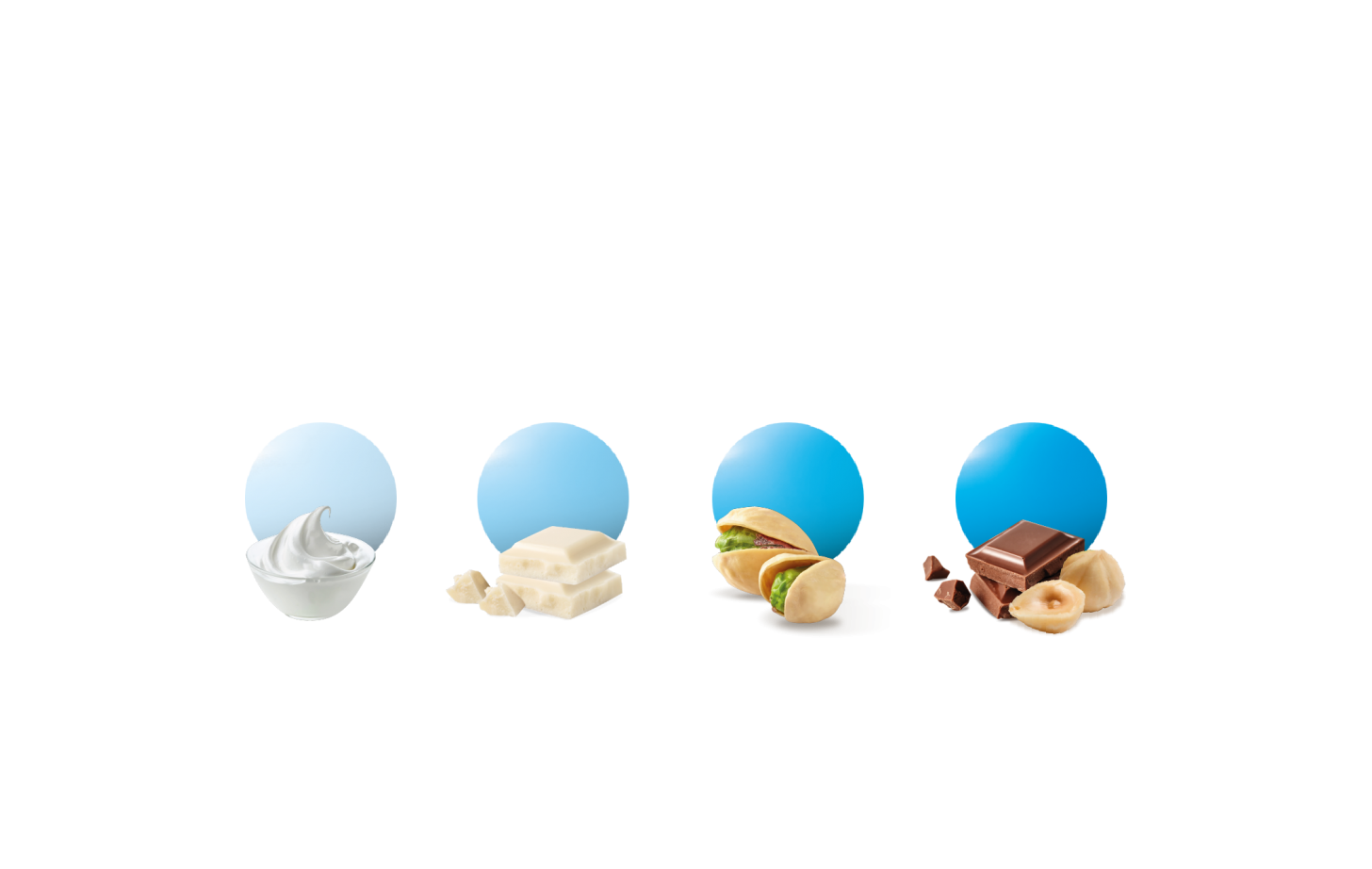 Cuore morbido al cioccolato bianco o al latte ricoperto di cioccolato al latte e da un sottile strato di zucchero