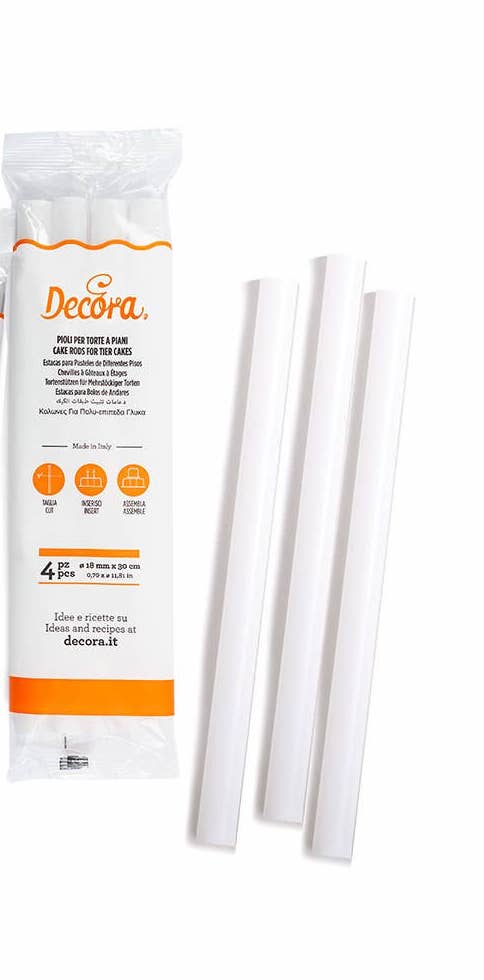 In polipropilene, idonei al contatto alimentare, sono ideali per il montaggio di torte a piani.  Lavabili a mano e riutilizzabili. Facili da tagliare.