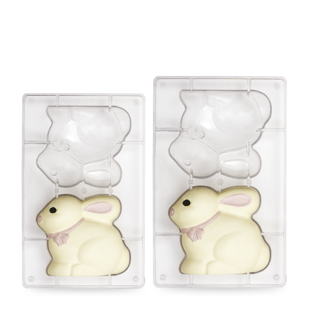 Stampi professionali in policarbonato, un materiale che consente di ottenere cioccolatini lucidi e perfetti. E’ importante temperare bene il cioccolato prima di versarlo nello stampo. La particolare forma consente di combinare insieme i cioccolatini per ottenere figure in 3d.