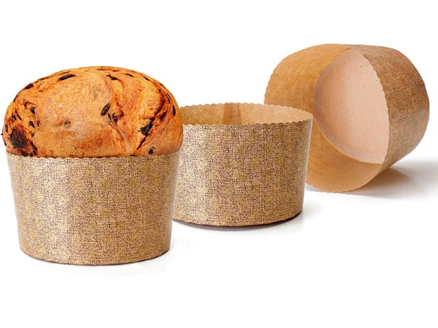 Stampo per cottura in carta di pura cellulosa ad alta densità, naturale, resistente fino ad una temperatura di 200° C. Vengono utilizzate principalmente per realizzare il classico panettone natalizio o il pan brioche.
