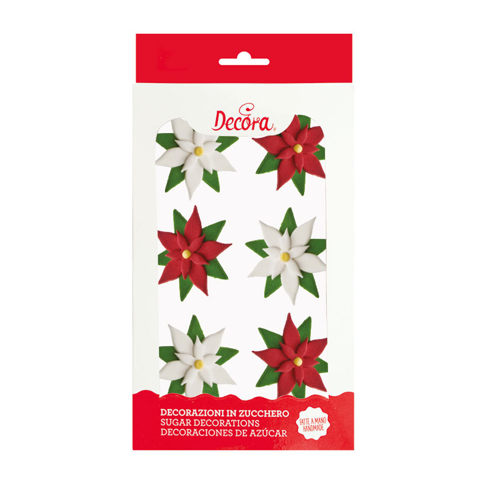 Decorazioni in zucchero, pronte all’uso. Realizzate a mano con coloranti di estrazione naturale. Perfette per decorare facilmente torte, cupcakes, biscotti e dolcetti. Confezione da 6 pezzi assortiti.
